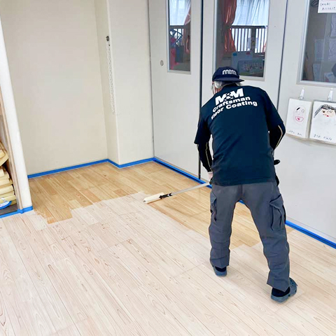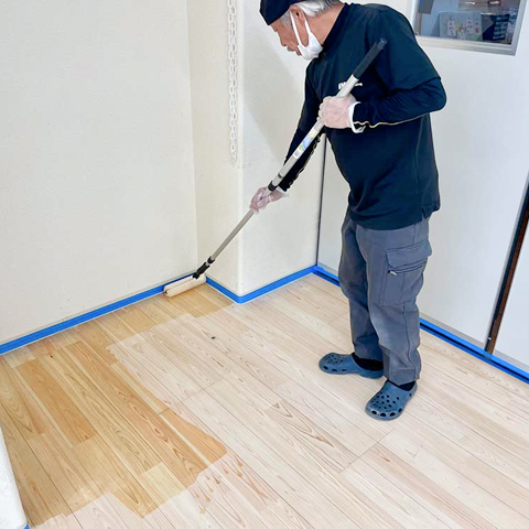 環境にやさしい水性ウレタンを塗布し、フローリングの保護膜を形成します。