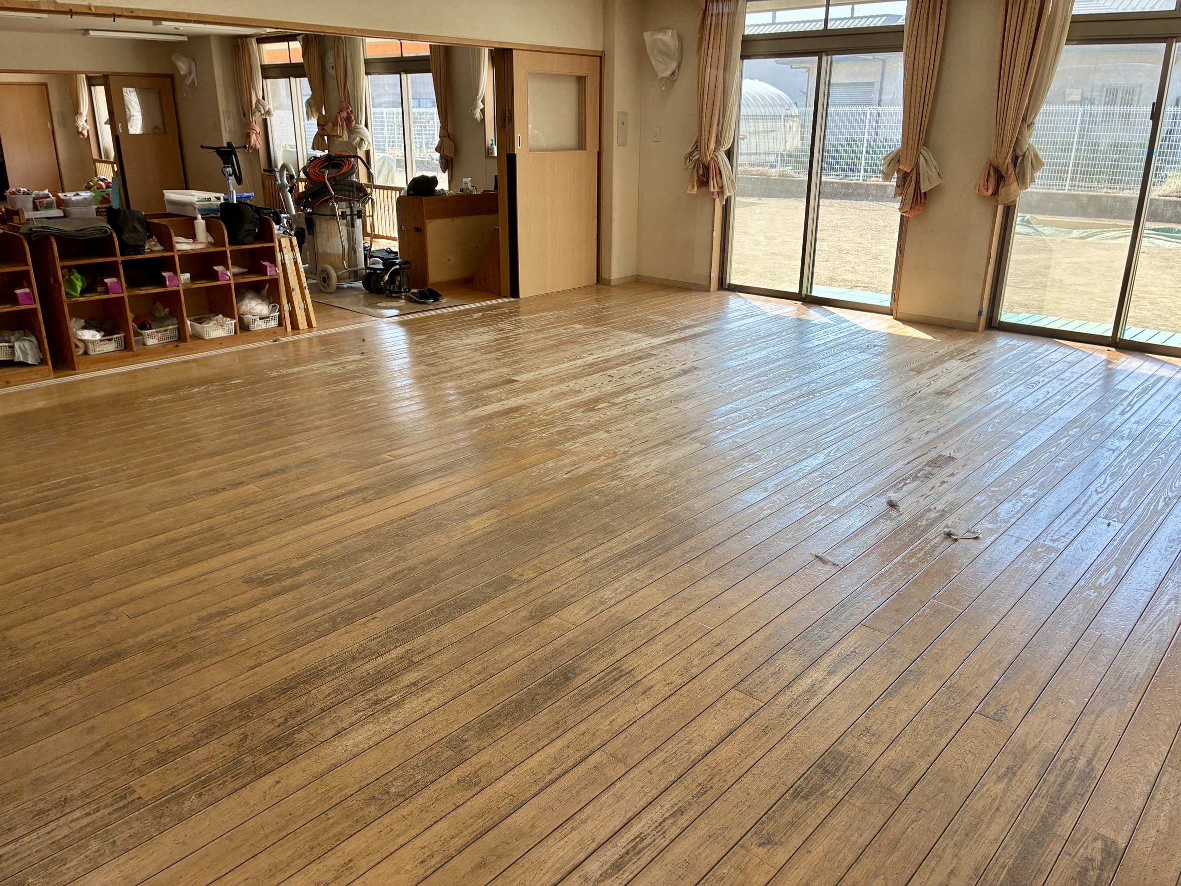 中野区の保育施設のフロアサンディング+コーティング仕上げ施工事例